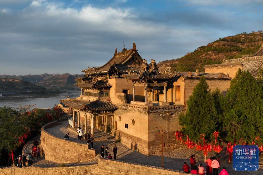 "新華社發(劉亮亮 攝)↑ 山西省呂梁市臨縣磧口古鎮一角(10月29日攝,無人機照片)。" 磧口新生 古鎮新“味”